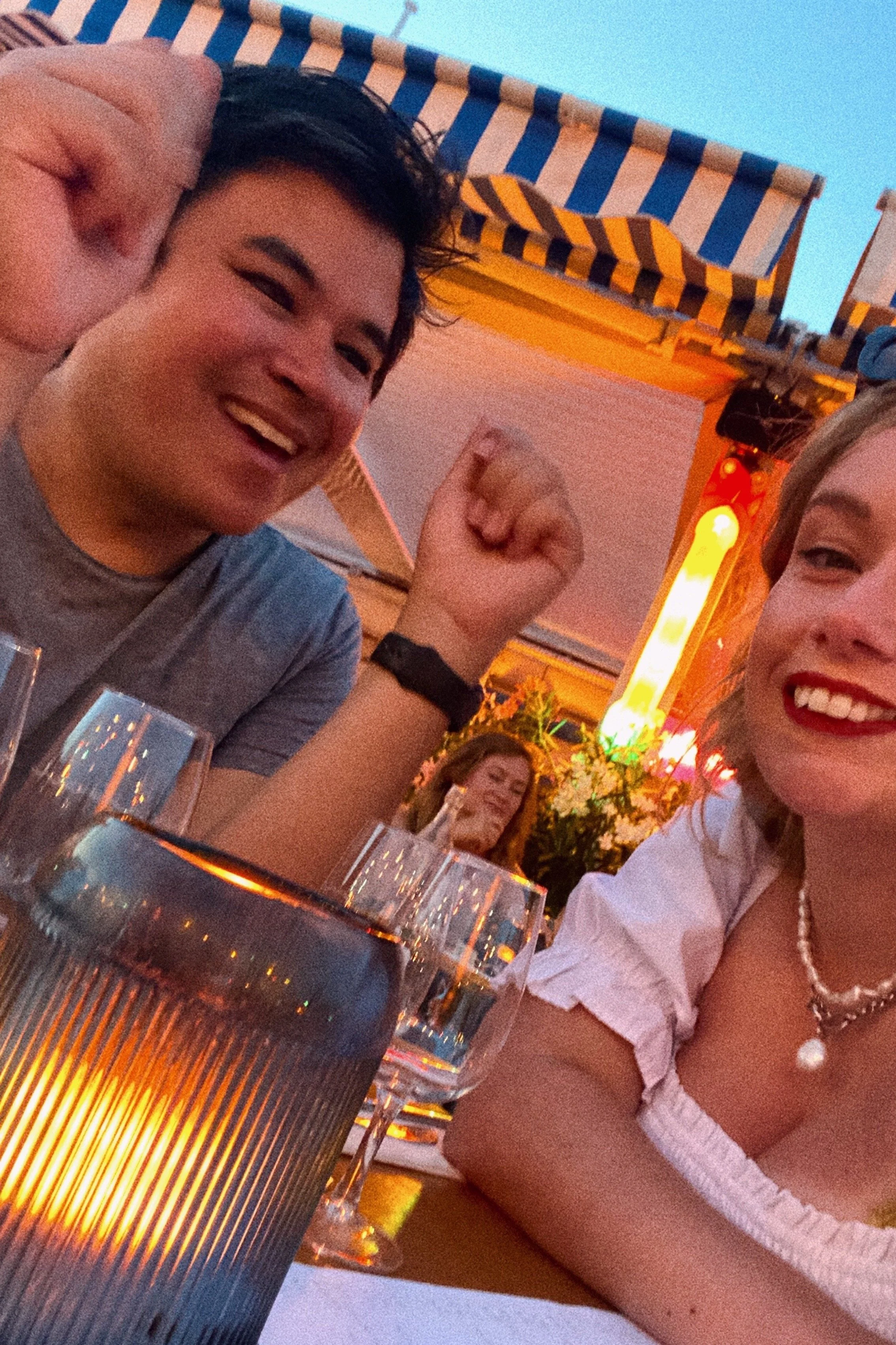 Drinks are on you! Buy us a drink over dinner on our trip.